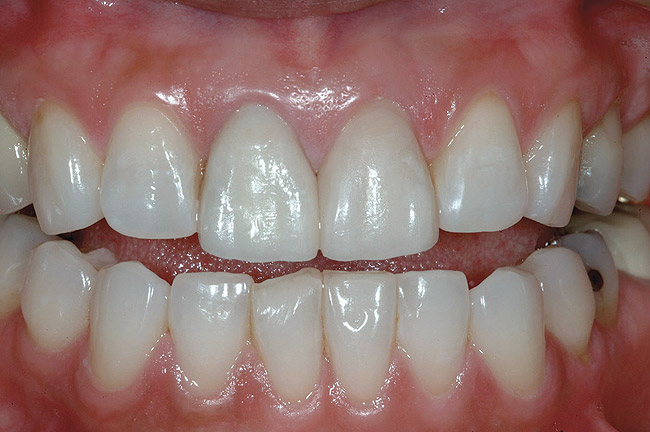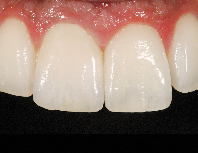 The most widely used version is the original pressable ceramic Empress® (Ivoclar Vivadent, www.ivoclarvivadent.com) (Figure 5 through Figure 6B).). A number of pressable materials with properties and microstructure similar to Empress are available. These include Finesse® (DENTSPLY, www.dentsply.com), Authentic® (Jensen, www.jensendental.com), PM™9 (Vita, www.vident.com), and OPC (Pentron, www.pentronceramics.com). A machinable version of Empress CAD (Ivoclar) designed for both CEREC® and E4D® CAD/CAM (D4D Technologies, www.e4dsky.com) systems for high-leucite ceramics has performed well clinically when used for posterior inlays and onlays, as well as anterior veneer and crown restorations.9-14 Paradigm™ C porcelain block (3M ESPE, www.3mespe.com) has similar properties. Machinable and pressable systems have much higher fracture resistance than powder/liquid systems and have shown excellent clinical results for posterior inlay and onlay applications and anterior veneer and crown restorations.2-7,10-14