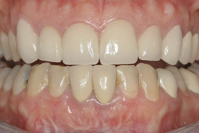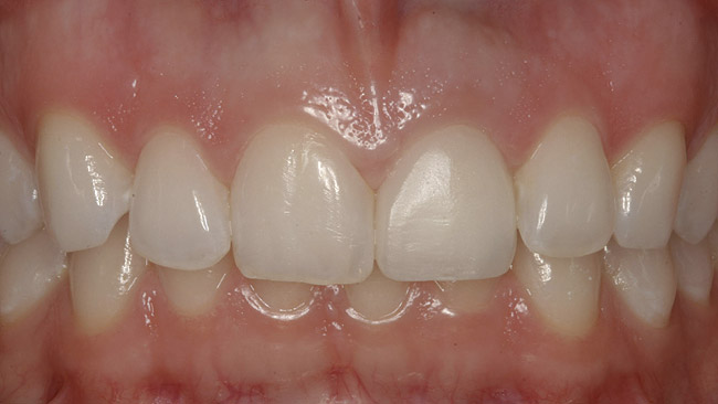 A 36-year-old nonsmoking Caucasian woman in good health presented to the author’s periodontal practice to replace tooth No. 26 with an implant. She had presented to her restorative dentist with a chief complaint of yellow, poorly color-matched mandibular anterior teeth (Figure 1). Her medical history was significant for asthma and seasonal allergies for which she took oral montelukast, orally inhaled fluticasone and salmeterol, and oral cetirizine; she also took lorazepam for anxiety. Her dental history was significant for traumatic experiences.
