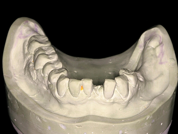 Fig 9. Mandibular definitive cast showing detail necessary for final prosthesis.