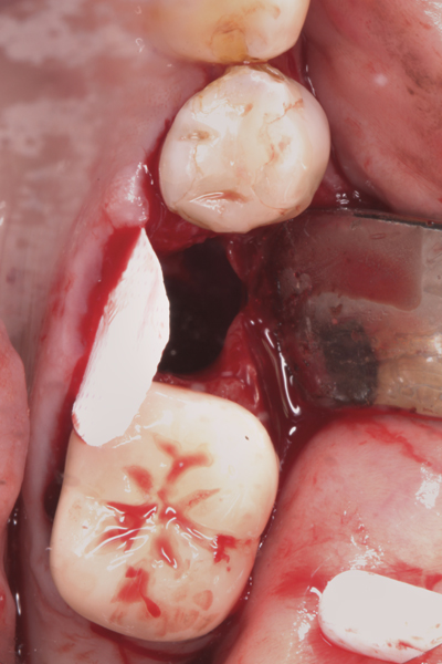 Despite a total lack of randomized clinical trials, the numerous cases presented demonstrate that this procedure is clinically beneficial with respect to restoring a defective buccal or lingual plate of bone. In conclusion, GBR procedures using d-PTFE are easy to perform and cause less morbidity when compared to procedures that require flap advancement to achieve primary closure.