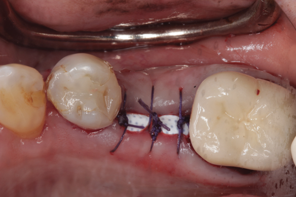 • Several studies suggested that early barrier removal leads to poor results when performing a ridge augmentation.29,30 However, this conclusion may be incorrect, because these investigations may have erroneously surmised that early barrier removal was associated with lack of regeneration, when in reality, failures were related to soft-tissue dehiscences and bacterial contamination, which resulted in early barrier removal.