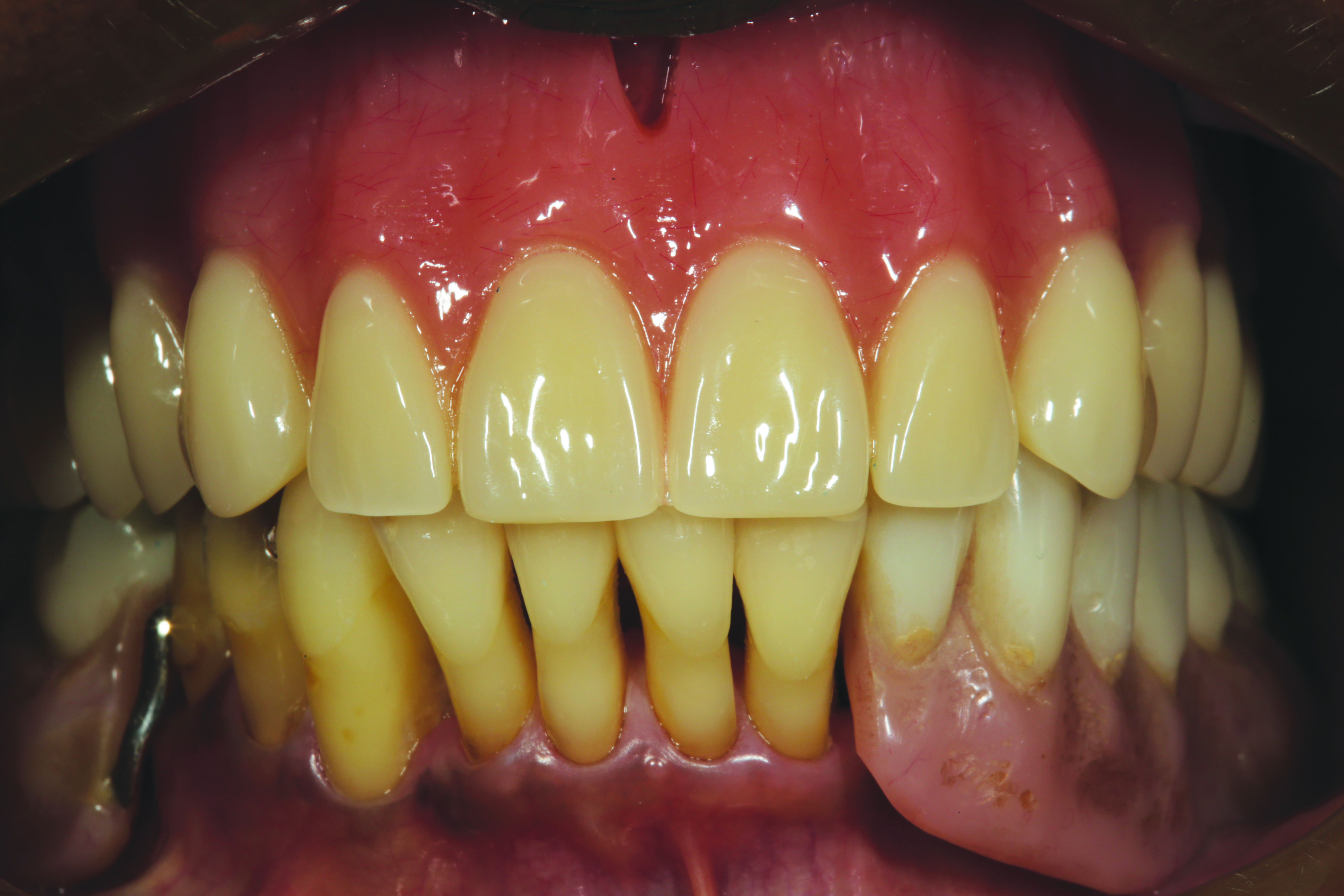 Upon successful completion of the try-in, the case was returned to the laboratory for completion. The technician digitally requested that the case be completed in the appropriate tooth and base resin shades. The case was completed at the Heraeus Kulzer facility and returned for delivery.