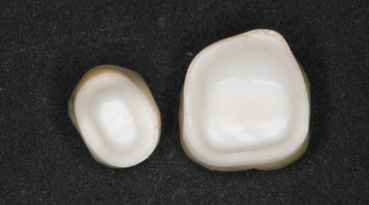Both zirconia and lithium disilicate have adequate inherent strength to be cemented without risk of fracture when following the manufacturers’ recommendations for tooth reduction. To ensure fracture resistance for zirconia, the recommendation for occlusal reduction is 1.0 to 1.25 mm, with 0.5 mm considered the absolute minimum. Lithium disilicate requires a minimum thickness of 1.5 mm on the occlusal surface when cemented, and this can be reduced to 1 mm if a true bonding process is followed. Cementation of these high-strength ceramic restorations is accomplished with glass-ionomer, resin-modified glass-ionomer, and self-adhesive resin cements.
