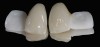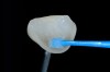 The clinical application of this protocol is illustrated in a patient situation where laminate veneers were placed on four maxillary incisors to replace lost tooth structure and restore function and esthetics. The failing restorations were removed, followed by a conservative veneer preparation (Figure 1 and Figure 2). The bonding surfaces of the feldspathic porcelain veneers were acid-etched with hydrofluoric acid for 2 minutes (Figure 3) and thoroughly rinsed. Then a silane coupling agent was applied (Figure 4). Figure 5 demonstrates the situation after bonding the veneers to the teeth with a composite resin luting agent.
