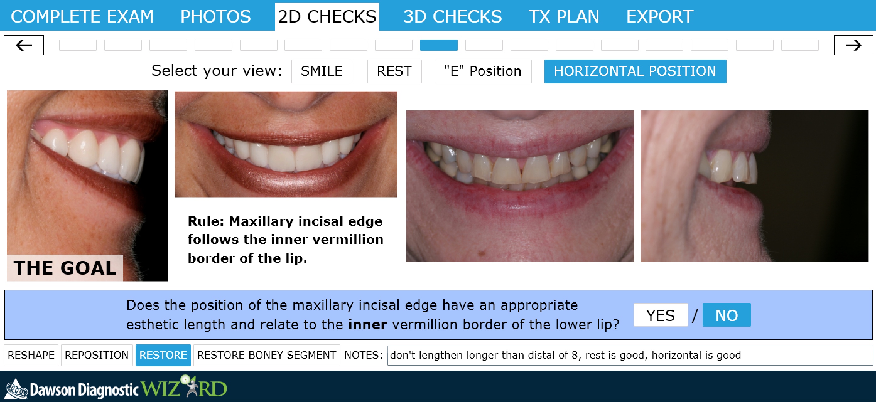 Changes in incisal edge position can only be estimated with a diagnostic wax-up and must be tested with properly contoured provisional restorations. This will verify esthetic, functional, and phonetic success for the patient, and the provisionals will provide a blueprint for the laboratory when creating the final restorations.