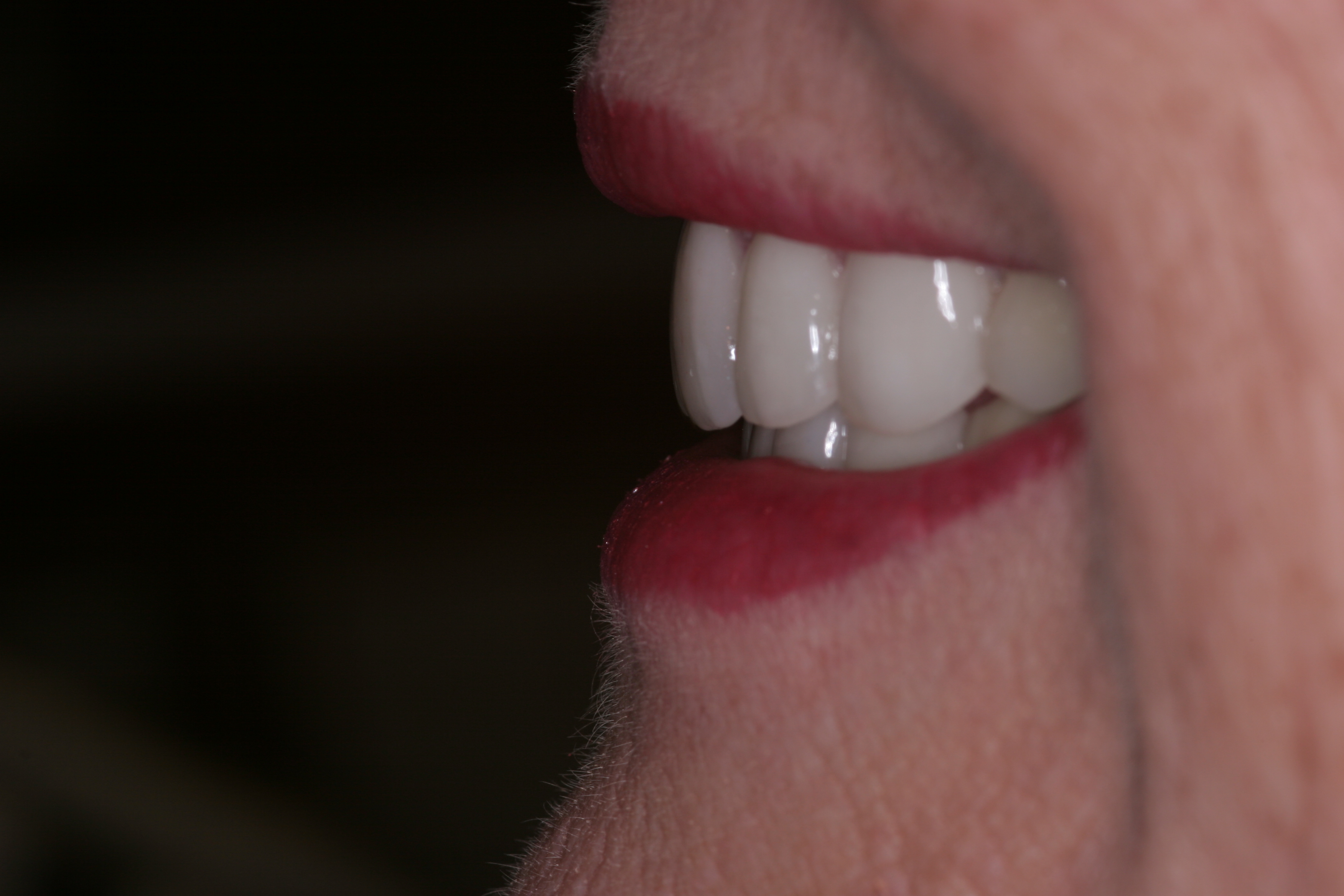 The horizontal edge position of the incisors may be one of the most critical factors to correctly determine when treating a worn dentition. The horizontal position must be in harmony with the envelope of function and lip closure path, and also be phonetically correct. Lingualization errors will lead to an anterior–posterior constriction in the patient’s envelope of function. This occurs as the maxillary edges interfere with the lower incisors’ arc of closure.21 Additionally, the maxillary horizontal edge position influences production of “f,” “v,” and “s” sounds, and errors in its placement can cause speech difficulty and speech impediments.