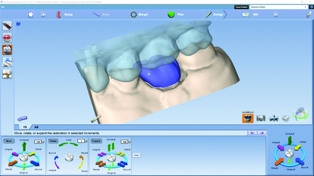 Had this case utilized a custom titanium abutment, a 3D model with analog would have been unnecessary, and the design file for the abutment could have been sent back for restoration design and fabrication without any physical models or re-digitization required. Also, the restoration proposal split off from the titanium abutment could have been sent and milled in office, as Romexis software (Planmeca CAD/CAM Solutions) allows for open-architecture restoration STLs from any CAD software to be imported and milled on the PlanMill 40.