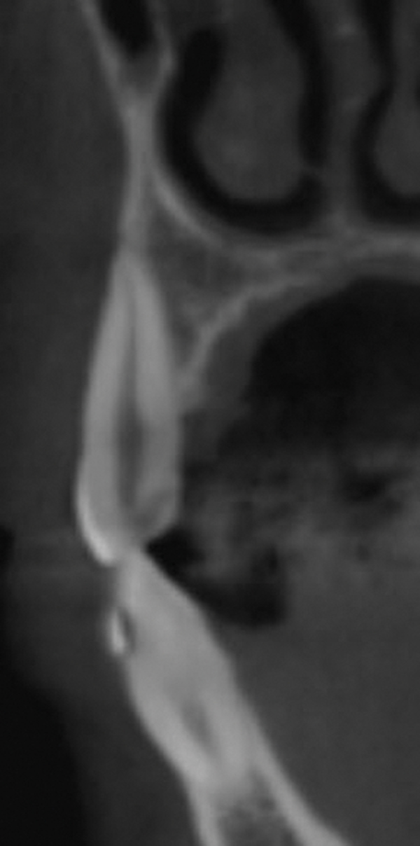 The increase in bony width after CAO is a common finding in cases in which a bone graft was added.17,31 Some have shown that additional bone grafting during the use of CAO promotes complete bone formation.31 In contrast, the key question is this: Are any complications noted when performing CAO without bone grafting? More evidence in this area is needed. Nonetheless, bone grafting is often beneficial because of the fragility of the facial bone. In a study of nearly 500 patients for whom cone-bean computed tomography imaging was used to evaluate facial-bone thickness from the maxillary first premolar to the contralateral maxillary first premolar, Braut and colleagues72 showed that, on average, 90% of patients studied had less than 1 mm of facial-bone thickness. Facial bone augmentation is, therefore, often an advantage. Also, bone formation depends on adhering to surgical and biologic principles such as PASS73 for optimal healing and outcome predictability. (PASS principles refer to primary wound closure, angiogenesis, space creation or maintenance, and stability of the blood clot and implant.) In most cases, bone-graft placement will result in increasing bone width.