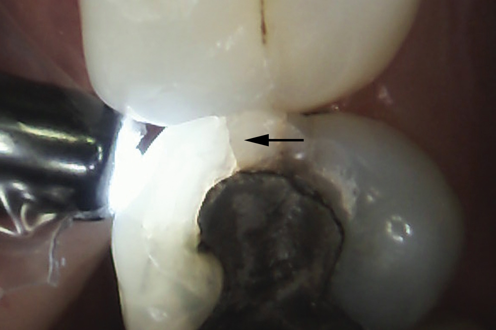 As cracks extend subgingivally along the root surface into the periodontal attachment, they create an open pathway of irritants, including bacteria from the oral cavity and from involved root canal spaces to the reactive periodontium, causing inflammation of the periodontium and bone loss along the fracture line.7 Cracks are precursors to complete fractures, and, if permitted to progress to their natural conclusion, they can render teeth unsalvageable.2,3 Although they do not occur nearly as frequently as caries and periodontal disease, tooth fractures are still the third-most common cause of tooth loss and can appear in dentitions that are well cared for and maintained.9 These pathologic consequences are an impetus to address asymptomatic vertical cracks at very early stages.