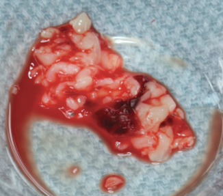 Another frequent use of PRF has been for the repair of Schneiderian membrane perforations (Figure 10 and Figure 11). While major advancements have been made with respect to surgical techniques, tools, and instruments to decrease the rate of membrane perforation, typical frequencies of tears generally have been reported in the 20% range.25,26 Traditionally, absorbable collagen membranes have been used most commonly; however, more recently attempts have been made to cover perforations with PRF. Due to the typically "sticky" consistency of PRF, this 100% natural fibrin scaffold may be used as a low-cost alternative to standard collagen membranes. Because of its natural properties, PRF, unlike a collagen barrier membrane, will not induce a foreign-body reaction.27