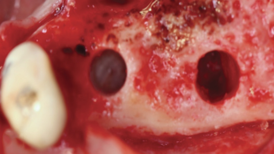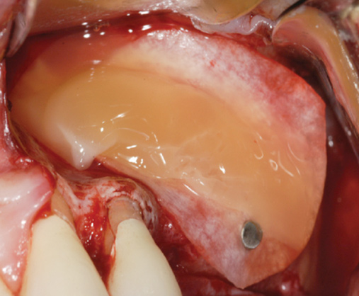 Therefore, lateral window closure is most frequently performed with a collagen barrier membrane. However, it is well-known that PRF is able to stimulate angiogenesis of tissues,30,31 and its use leads to faster soft-tissue regeneration. For these reasons, to further hasten soft-tissue healing and reduce patient morbidity PRF can be used over the top of collagen barrier membranes for improved tissue regeneration (Figure 14).