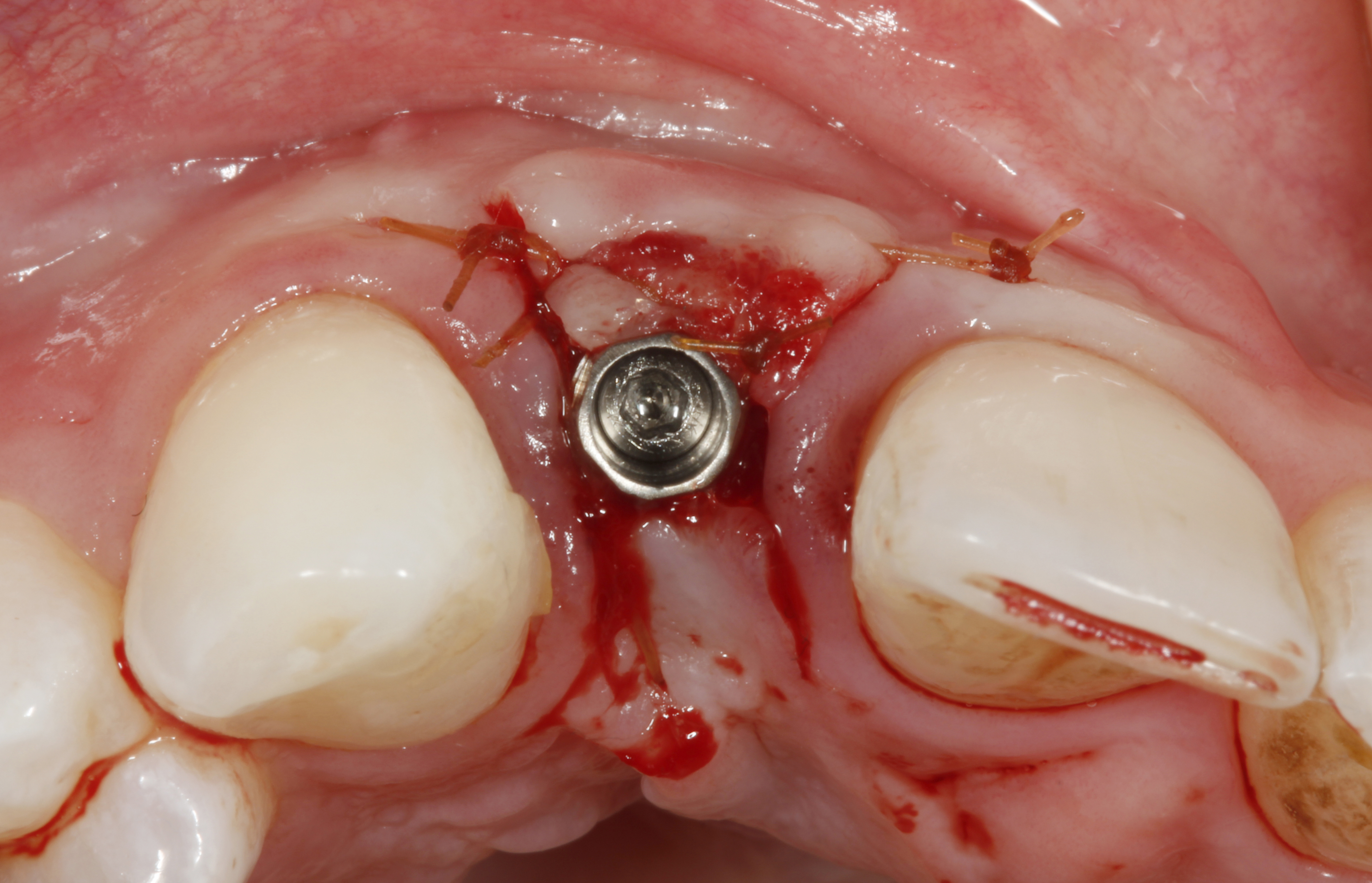 The rationale for not grafting at the time of implant removal is biologic. Frequently, there is a minimal zone of keratinized attached gingiva around a poorly positioned implant. Allowing the soft tissues to heal and mature in situ (ie, nature’s connective tissue graft) will eliminate the need to coronally reposition the flap, thereby leaving the mucogingival junction in its original position.