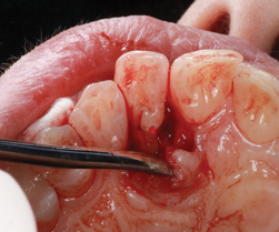 A developmental anomaly or the presence of perio-dontal disease can cause the bone surrounding some teeth to undergo alterations that result in osseous defects.1 For example, a palatogingival groove is an anomaly of enamel formation that predisposes the teeth to severe bony defects.2 The palatogingival groove facilitates bacterial colonization of the gingival complex, leading to periodontal inflammation, epithelial attachment breakdown, and progression to a periodontal pocket with bone loss.3 The management of a palatogingival groove presents a challenge to most clinicians because it requires an interdisciplinary approach to diagnosis and treatment planning.4 If a palatogingival groove is not diagnosed in time, collaborative management may require an endodontist and a periodontist to resolve concerns in these areas prior to restoration by a restorative dentist.