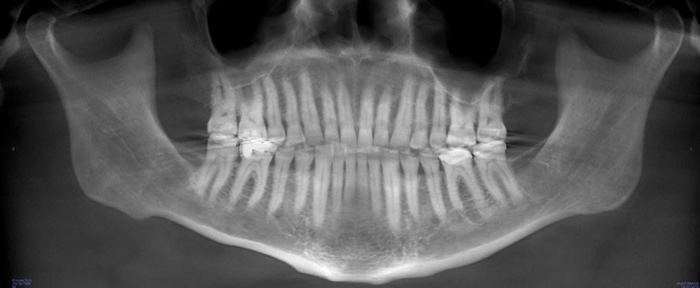 A comprehensive dental exam was performed that included a blood pressure test, an oral cancer screening, intraoral photographs, full mouth radiographs, a periodontal chart, a saliva test, and a CBCT scan. The exam confirmed the presence of active dental decay, periodontitis (ie, stage III, grade B), and areas of calcifications in his carotid artery (Figure 1 through Figure 3).