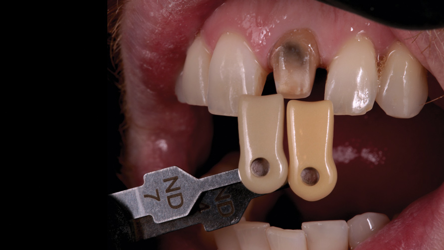 Discoloration of the maxillary anterior dentition poses a significant esthetic concern for many individuals seeking cosmetic dental treatment.1,2 The permanent teeth most commonly affected by discoloration are the maxillary central incisors, and the incidence occurs with greater frequency among males.3,4 The discoloration of a single tooth may have multiple etiologies; however, this phenomenon is often related to pulpal necrosis as a direct result of trauma, loss of vitality, incomplete extirpation of the pulp horns, obturation materials, and various restorative procedures.5-8