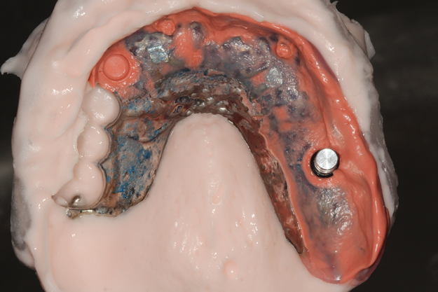 When evaluating a tissue-supported, implant-retained prosthesis with a resilient stud-style attachment system, it is important to consider the passivity of the prosthesis when fully engaged in the implant system. Using chairside processing steps can potentially increase the ability of the clinician to fabricate a prosthesis that properly engages the implants.18 Additionally, some have shown in clinical studies that chairside attachment processing results in fewer pressure sore spots, fewer visits to the clinician for retentive element adjustments, and minimizing long-term mechanical problems with the prosthesis.19