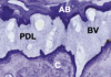 It has been established that the critical vascular supply to the periodontium and supportive alveolar bone is threefold22,23: (1) within the periosteum of the alveolar bone (Figure 1); (2) within the cancellous portion of the alveolar bone proper (Figure 1 and Figure 2); and (3) a vascular plexus within the PDL itself (Figure 2 and Figure 3). This further clarifies the fact that not only does the periodontal functional unit have components that are interdependent to each other, but critical vascular supply to the alveolar bone is composed of three unique units.