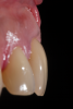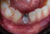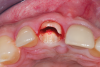 A retrospective evaluation of 128 socket-shield cases in the esthetic zone and posterior sites reported a survival rate of 96.1%. The most common complications noted were internal exposures (exposure of the retained root within the peri-implant sulcus) followed by external exposures (occurring on the external surface of the peri-implant free gingivae) of the retained root shield.64 In reaction to this noted complication, modifications to the original socket-shield technique were subsequently introduced and emphasized a reduced height of the socket-shield remnant to be equal in height to the immediate adjacent bone crest level and then preparation of a chamfer finish to the coronal aspect of the shield's internal dentin surface. This modification was designed to avert the internal exposure of the shield and facilitate fabrication of a prosthetically modified provisional restoration with an "S"-shaped emergence profile thereby enhancing the maximum potential of the resultant soft-tissue infill.65 This modification reduces both internal and external exposures of the socket shields (according to ongoing research by present author HG and colleagues, which is yet unpublished). The technique is depicted in Figure 4 through Figure 10.