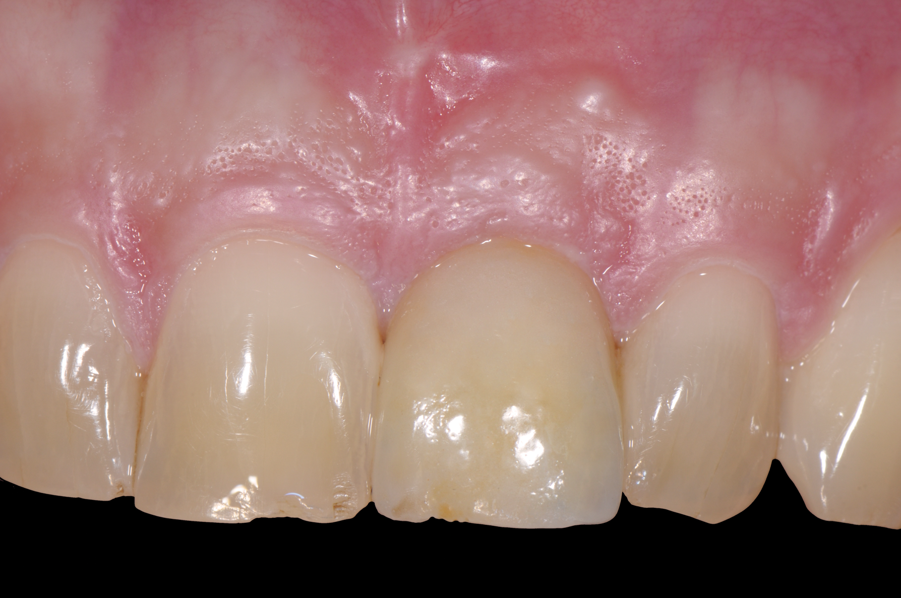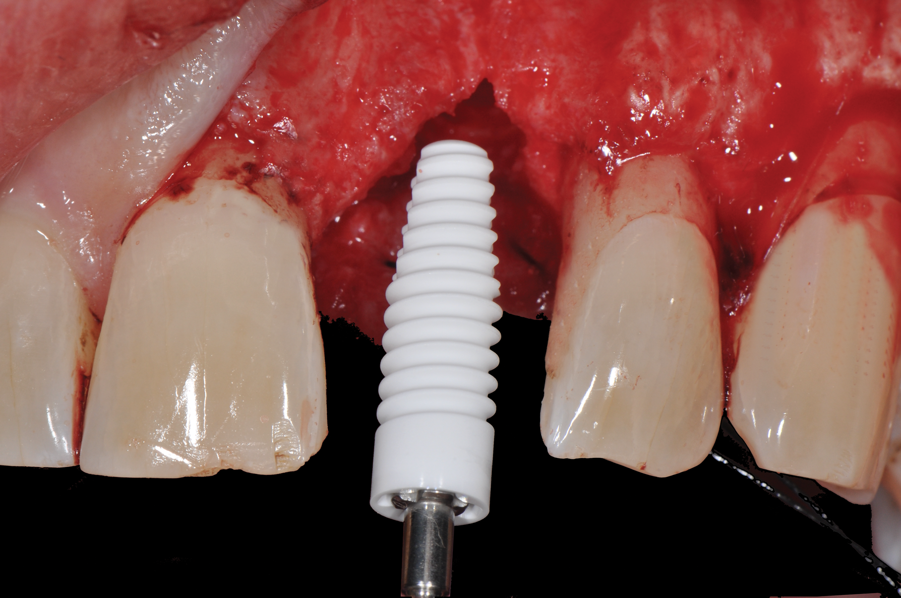 Still, as with titanium implants, undesirable recession with an exposed implant shoulder may occur in rare cases with ceramic implants. Nonetheless, from an esthetic point of view, this inflammation-free recession of the gingiva is likely to be tolerated much better by patients concerned with the dark margins of titanium implants (Figure 2).