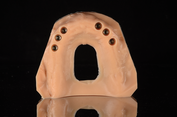 Digital design also enables the inclusion of spacers from an STL file for specialized attachments that are designed to work in concert with telescopic abutments and bars. These STL file attachments can be easily snapped onto the surface of the primary abutment or bar digitally, and the tertiary frame can be designed over the primary structure with snapped attachment spacers so that, once milled, the attachments can simply be inserted into the tertiary frame.