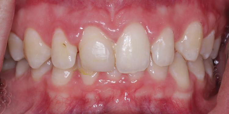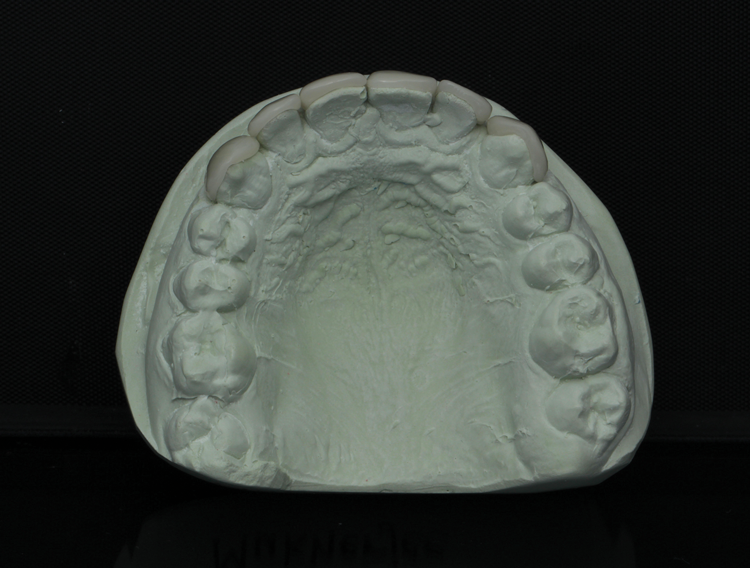 There is insufficient evidence regarding the use of indirect composites as a laminate veneer material. Indirect composite laminate veneers, both heat- and photopolymerized, have been reported to have a lower survival rate (75%) when compared with ceramic veneers (100%).8 Composite veneer failures have been attributed to either debonding or restoration fracture. In addition, the shade match, surface quality, and restoration wear of indirect composite veneers have all been shown to be inferior when compared with ceramic veneers. For these reasons, indirect composite veneers are only indicated for a limited number of clinical scenarios, such as long-term provisional/interim treatment with a plan for eventual replacement with ceramic material (Figure 1 through Figure 6) or when finances are a concern. If this approach is chosen, the process of obtaining informed consent from the patient should include an explanation about the increased risk for future esthetic and/or mechanical complications.