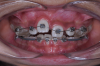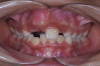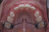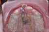 The maxillary right permanent centralincisor had a delayed eruption of 1½ years compared to its homologous incisor, and it was anteriorly displaced due to insufficient space in the premaxilla. Removal of the maxillary deciduous canines was indicated to unravel the crowding. An apically positioned flap of the impacted right central incisor was made to facilitate its eruption (Figure 5 and Figure 6). The case was worked up to plan an active phase l treatment, consisting of palatal expansion and the use of sectional fixed appliances in the upper arch. A transverse deficiency without posterior crossbite was identified, and therefore palatal expansion with a bonded expander was planned to widen the premaxilla (Figure 7 and Figure 8). A two-by-four fixed appliance system (brackets in the four maxillary anterior teeth and bands on the maxillary first molars) was used to align the maxillary teeth. The gingival margin of the retained maxillary right central incisor was slightly more apical than the left one, which erupted as expected (Figure 9 and Figure 10). Figure 11 shows a panoramic radiograph taken after completion of phase 1 treatment.